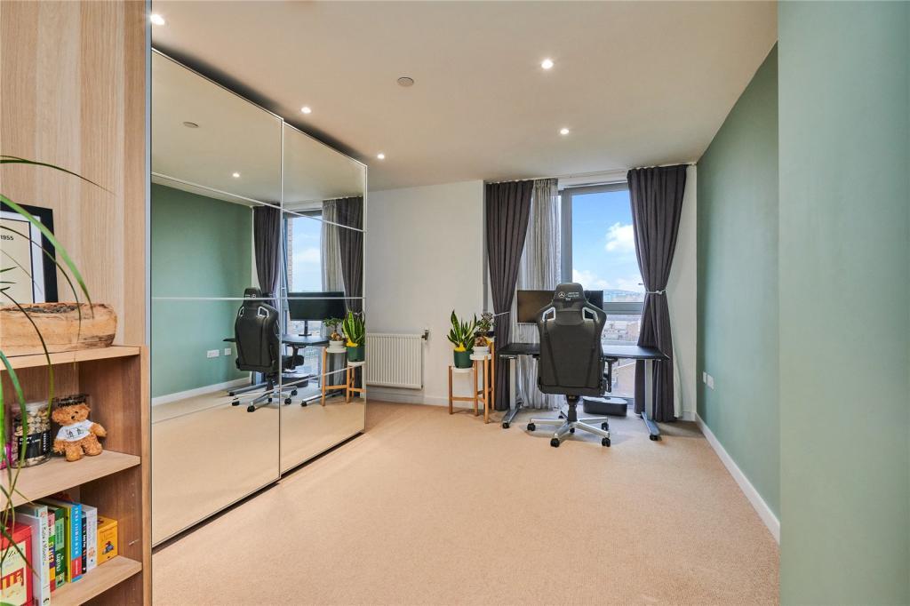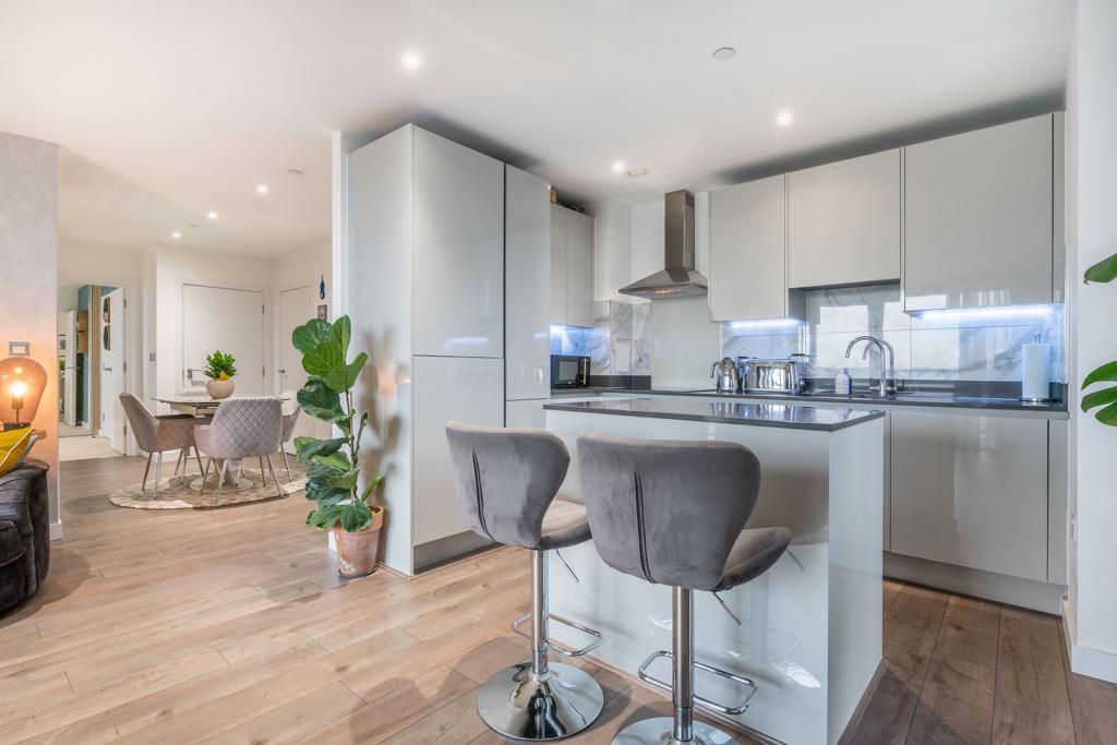 Facing east to feature fabulous sunrises, this stunning two double bedroom apartment offers 937 square feet of luxury accommodation. The very attractive open plan layout includes a contemporary, integrated kitchen and spacious lounge-diner. Through glass doors, a large terrace balcony overlooks the docklands, including the O2. Live with style, luxury and convenience, including a concierge, well kept communal gardens, and on-site gym.