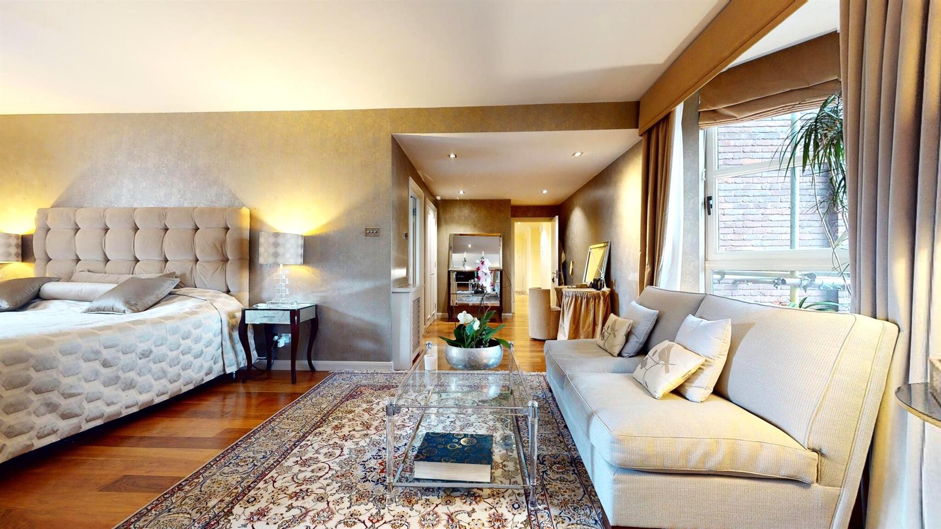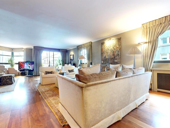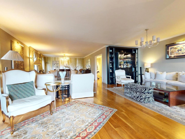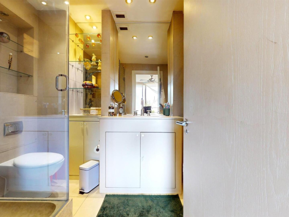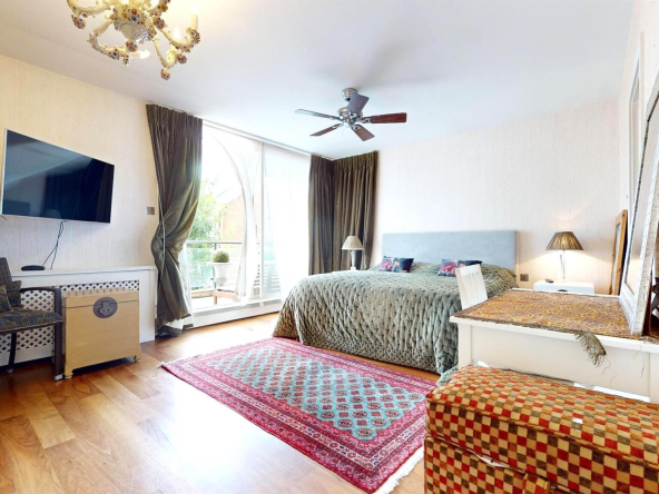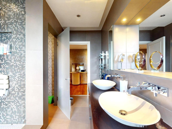 One of the highlights of this property is the five bathrooms, ensuring convenience and luxury for all residents. The penthouse location provides privacy and stunning views, especially from the three balconies that overlook the river, offering a peaceful retreat from the hustle and bustle of city life.